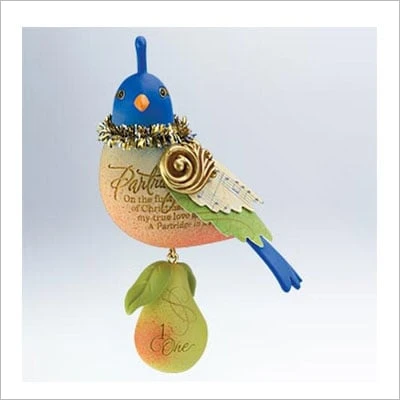 Hallmark Ornament. Dimensions: 3 3/4″ H, Artist: Edythe Kegrize. This is the 1st ornament in the new Hallmark Series, Twelve Days of Christmas. This is the first time that Hallmark has committed to a new series that it knew would last 12 years to complete the collection.